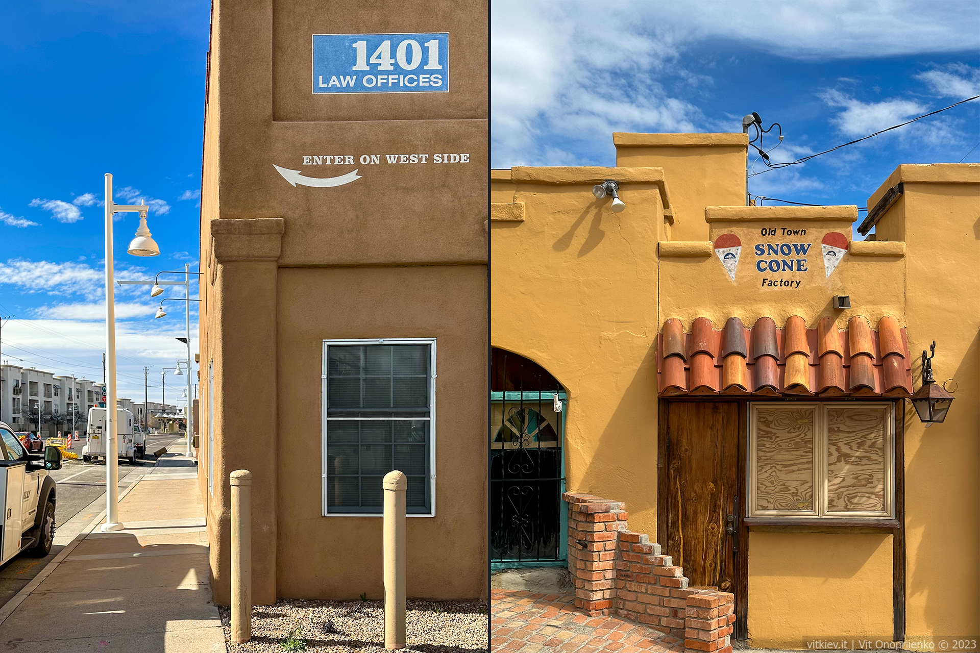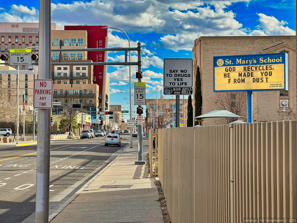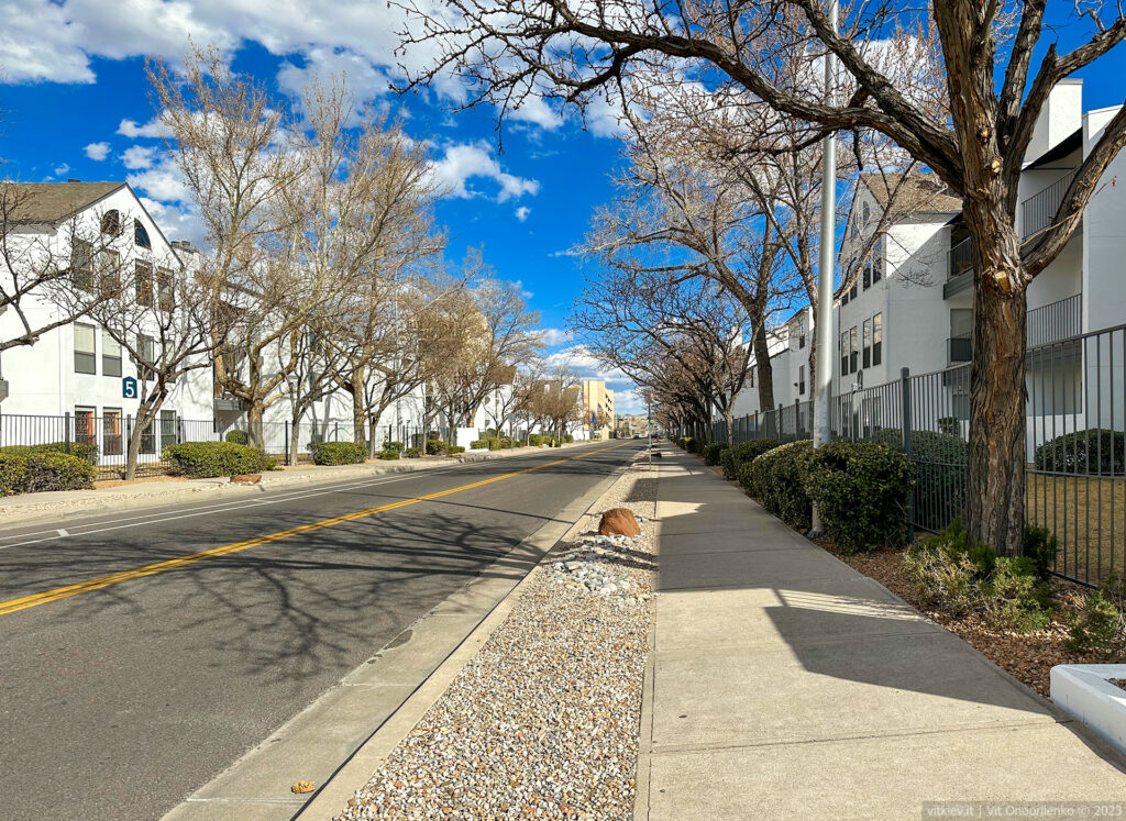 Альбукерке оказался до ужаса фотогеничным городом. Из-за своей одноэтажности создает впечатление мертвого. Центр очень чистый и ухоженный. Запредельный, почти что детройтсткий, уровень преступности визуально не заметен.